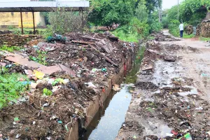 नाले के जाम होने के कारण मार्ग में पानी भरा रहता था। कोटा दक्षिण वार्ड 57- नाले की कार्य योजना अटकी, बदहाली का आलम