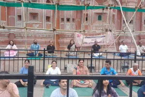 भारत पर्यटन जयपुर (पर्यटन मंत्रालय, भारत सरकार) एवं पर्यटन विभाग, राजस्थान सरकार के संयुक्त तत्वावधान में अंतर्राष्ट्रीय योग दिवस के अवसर पर आमेर किले के रामबाग परिसर में योग सत्र का आयोजन किया गया 140 साल पुरानी इमारत में आज भी ऋषि-मुनी कर रहे योग
