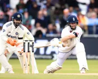 बर्मिंघम। मध्यम तेज गेंदबाज मोहम्मद सिराज (70 पर 6) की घातक गेंदबाजी की बदौलत भारत ने दूसरे टेस्ट के तीसरे दिन इंग्लैंड की पहली पारी को 407 रनों में समेट दिया। खेल समाप्ति तक भारत ने अपनी दूसरी पारी में एक विकेट पर 64 रन बना लिए थे। केएल राहुल 28 व करुण नायर 7 रन बना नाबाद लौटे। भारत के आउट होने वाले एकमात्र बल्लेबाज यशस्वी जायसवाल (28)रहे। इंग्लैंड के लिए जैमी स्मिथ (नाबाद 184) और हैरी ब्रूक (158) के शतकों के बावजूद भारत ने इंग्लैंड के खिलाफ पहली पारी के आधार पर 180 रन की महत्वपूर्ण बढ़त हासिल की। इस प्रकार भारत की कुल बढ़त 244 रन हो गई है और उसके 9 खिलाड़ी शेष है। इंग्लैंड एक समय चायकाल तक पांच विकेट पर 355 रन बना मजबूत स्थिति में था। लेकिन अंतिम सत्र में भारत के लिए मोहम्मद सिराज और आकाश दीप ने शानदार गेंदबाजी का प्रदर्शन किया।